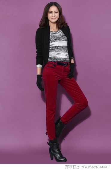 06 冬季的西装女裤,除去质感结实的呢料,细腻灯芯绒扮靓冬季最为驾轻就熟。带有些许复古气息的灯芯绒质地精巧、保暖性极佳,与艰深深挚雅致的酒红相结合,打破冬日沉闷,还职场女性一个靓丽温暖的春天。