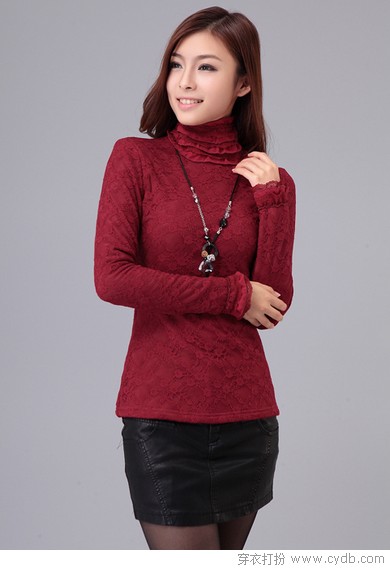 加绒蕾丝高领打底衫