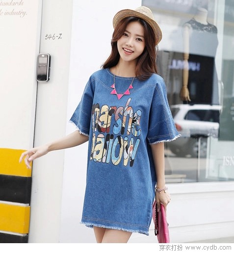03 牛仔裙并不陌生,但宽松休闲T恤款的牛仔连衣裙就显得有点凤毛麟角了,加之卡透气概的字母印花点缀衣身前片,并在袖口衣摆运用磨毛处置惩罚,随性中扭捏着长不年夜的味道,着实讨人喜爱。