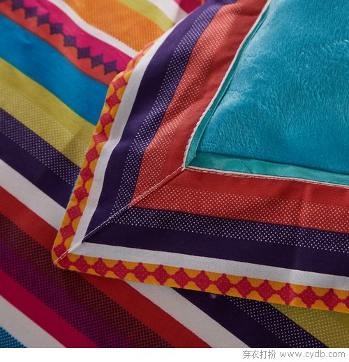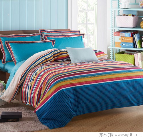 08 睡在彩虹里是什么感觉,想一想都让人心神神往。紫橙黄绿粉蓝紫,构成的条纹炫丽多彩,让我们的小床上充满光辉的阳光,哄动那颗年轻而张扬的心。用色彩注入活力,灵动从梦之初开始。