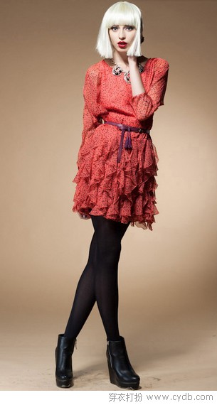03 俏皮的年夜爱心颇具视觉张力,活跃娇俏的形象一跃而出,不过别忧闷它会显胖,有竖条纹帮你忙,粗细调和与横竖拼接的设计将恼人的身材小瑕疵一扫光,很有日式漫画女主角的感觉呢。