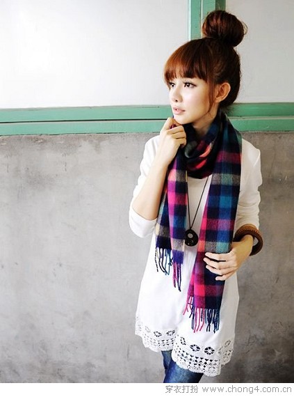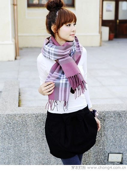 02 学院风尚怎能少得了格子元素,对于皮肤白皙的MM们小编建议可以尝试亮丽一些的颜色,整体亮度立马UP,好比这款暖色调的细格子领巾无论搭配任何素色打底衫效果都会很棒的哦~