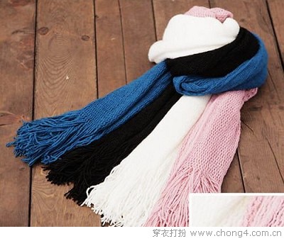 01 毛线针织镂空领巾超等百搭实用,很有甜蜜女孩的Feeling,浪漫迷人的流苏设计很有立体感,流利的线条搭配针织打底衫看起来十分清纯雅致。